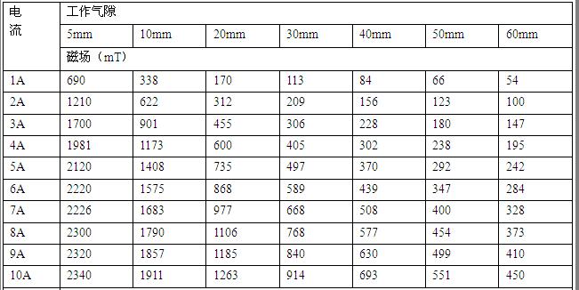 電磁鐵工作氣隙磁場是根據(jù)電磁感應(yīng)原理,電流源對磁場線包供直流電流,并由導(dǎo)磁回路聚磁產(chǎn)生磁場,調(diào)節(jié)氣隙大小,改變極面直徑,調(diào)整工作電流均可改變工作氣隙磁場的大小強(qiáng)弱。
